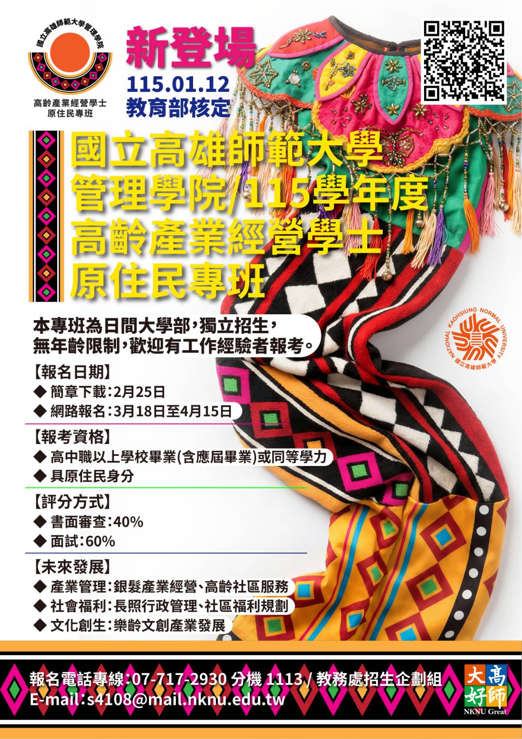 【轉知】高雄師範大學115學年度高齡產業經營學士原住民專班